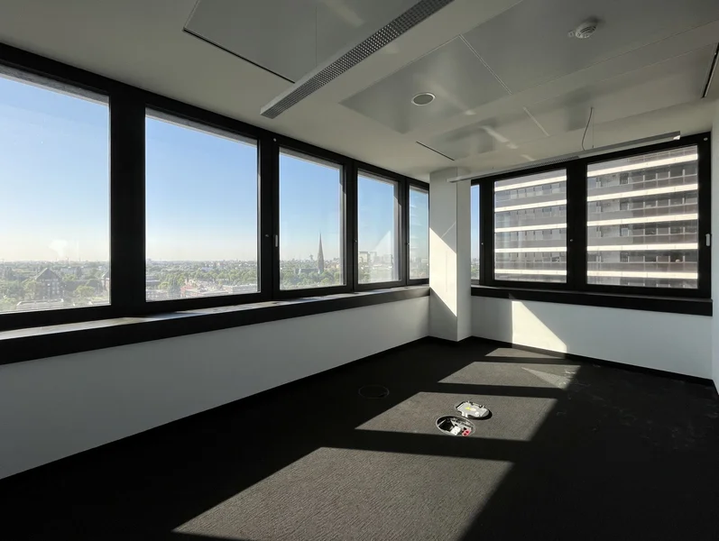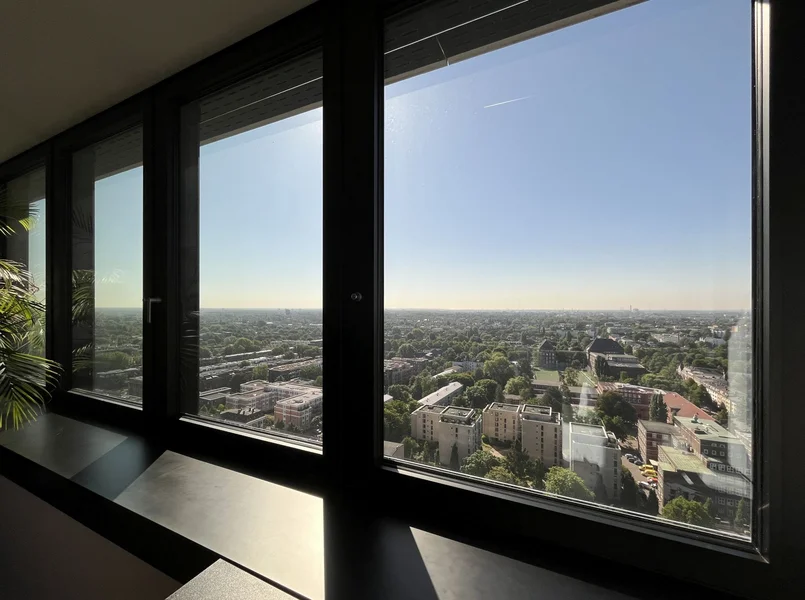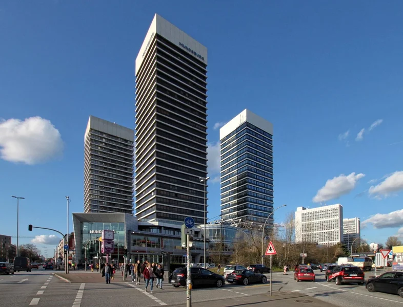 Als ein wichtiger Bestandteil der Hamburger Skyline besticht dieses Haus in gut angebundener Lage vor allem durch seine markante Bauweise - hoch und ein wenig an New York erinnernd. Was dabei entsteht sind - wie oben beschrieben - Büroflächen, die Euch atemberaubende Ausblicke garantieren und gleichzeitig schöne und natürlich belichtete Arbeitsplätze entstehen lassen. Über den Haupteingang gelangt ihr in das Haus und von dort aus mit dem Fahrstuhl in die gewünschte Etage - Treppensteigen bitte nur bis Stockwerk 8.