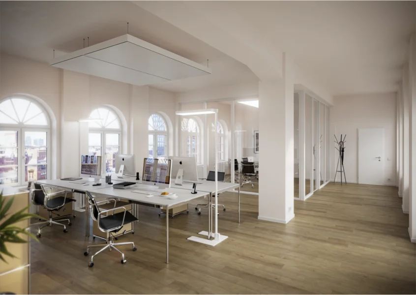 Die Büroflächen selbst werden durch eine Modernisierung hinsichtlich der technischen Ausstattung aufgewertet. Ziel ist es, zeitgemäße Büroflächen herzurichten, die dem zukünftigen Nutzer ein gutes Klima, tolle Ausblicke, einen effizienten Grundriss und einem daraus resultierenden Aufenthaltsqualität verschaffen.