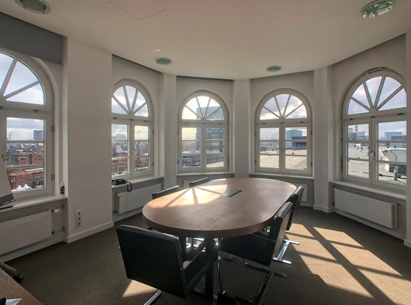 Moderne Büroflächen im historischen Chilehaus mieten - Blick über Hamburg mit Terrasse