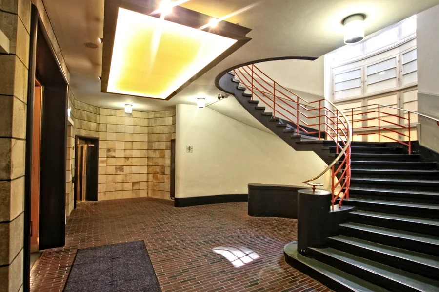 Im Zuge der Sanierung wurden Treppenhäuser, Zugänge und der denkmalgeschützte Paternoster aufwendig überarbeitet. Dabei wurden historische Elemente erhalten, während moderne Akzente und Technik intelligent integriert wurden.