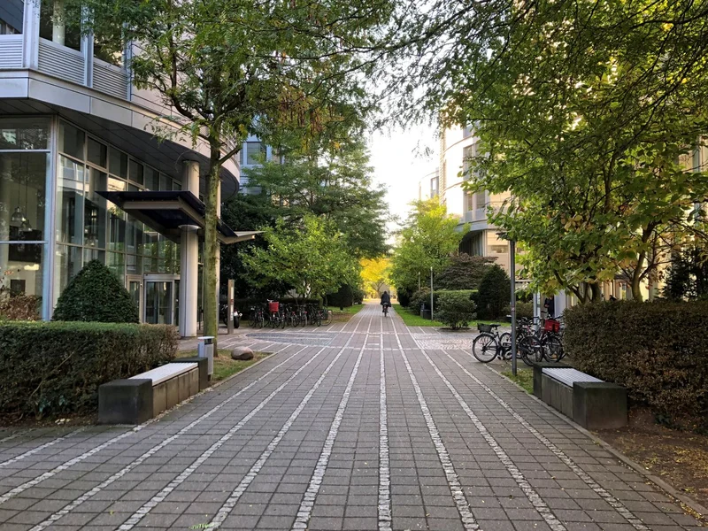 Der Gebäudekomplex mit seiner H-Form stammt aus den 90ern und bietet vor allem eins: viel Platz, gute Infrastruktur und kurze Wege. Die Bushaltestelle ist in zwei Minuten zu Fuß erreicht – von dort seid ihr bestens an Hamburgs Bahn- und S-Bahnnetz angebunden.