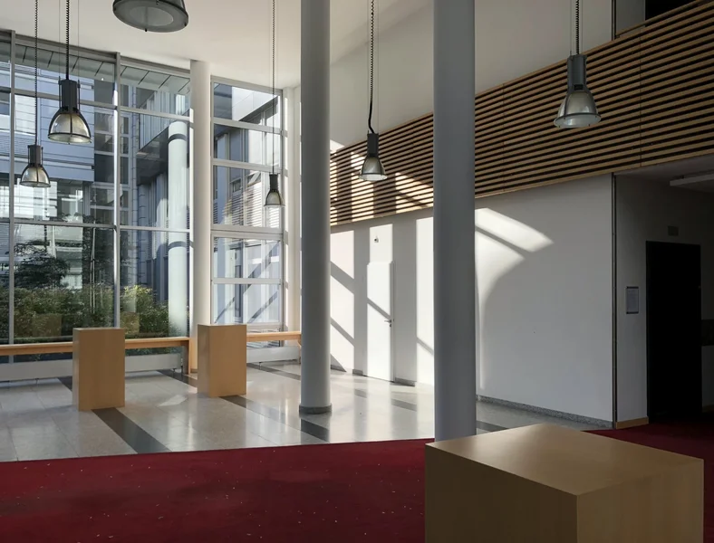 Zwei einladende, barrierefreie Eingangsbereiche, vier Personenaufzüge, Lastenaufzüge, außenliegender Sonnenschutz, moderne EDV-Verkabelung über Kabelkanäle, ein eigener Serverraum und eine Beleuchtung, die euren Arbeitsplatz ins richtige Licht rückt – klingt gut? Wird noch besser: Die Raumaufteilung wird auf Wunsch für euch angepasst. Und wenn ihr noch Lagerfläche braucht – gibt’s bei Bedarf gleich mit dazu.