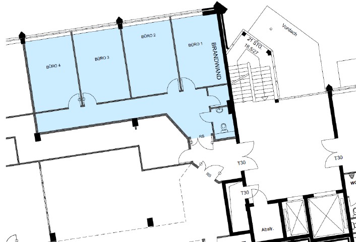 | Stock | Gebäude A | Gebäude B | Gebäude C | Gebäude D | Freie Mietfläche |