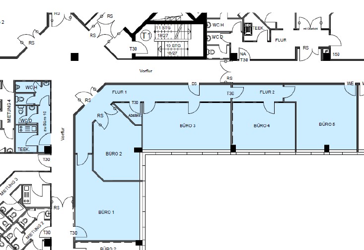 | Stock | Gebäude A | Gebäude B | Gebäude C | Gebäude D | Gebäude E | Gebäude F | Freie Mietfläche |