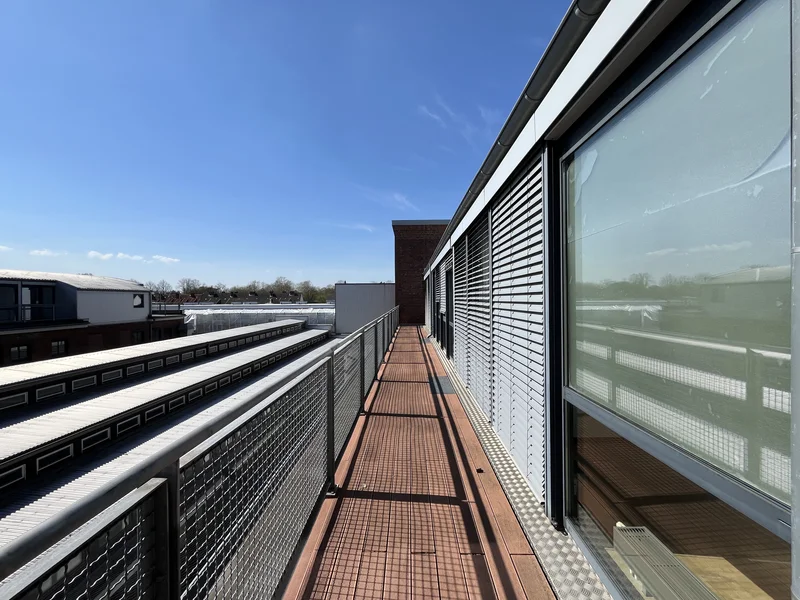 Die technisch sehr hochwertige Ausstattung der Büroflächen entspricht neuesten Standards: Hohlraumböden für Eure IT-Verkabelung, maßgeschneiderte Beleuchtungs- und Akustikkonzepte sowie der außenliegende Sonnenschutz schaffen ein rundum modernes, angenehmes und professionelles Arbeitsklima. Die schönen Terrassen- und Innenhofflächen sind der ideale Ort für die Tasse Kaffee zwischendurch.