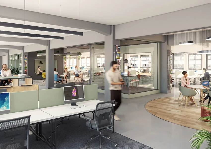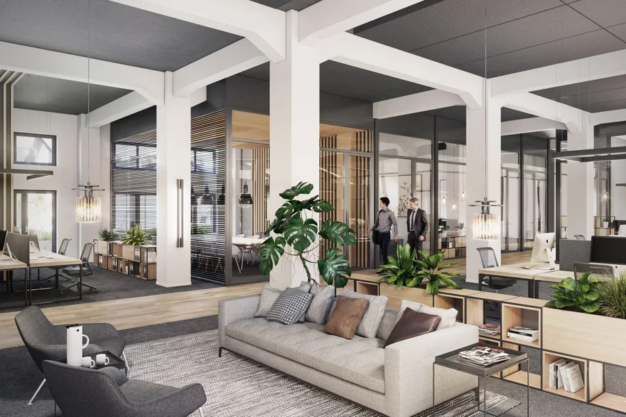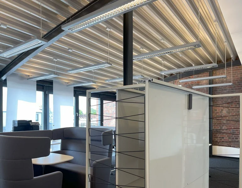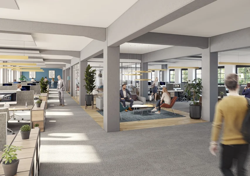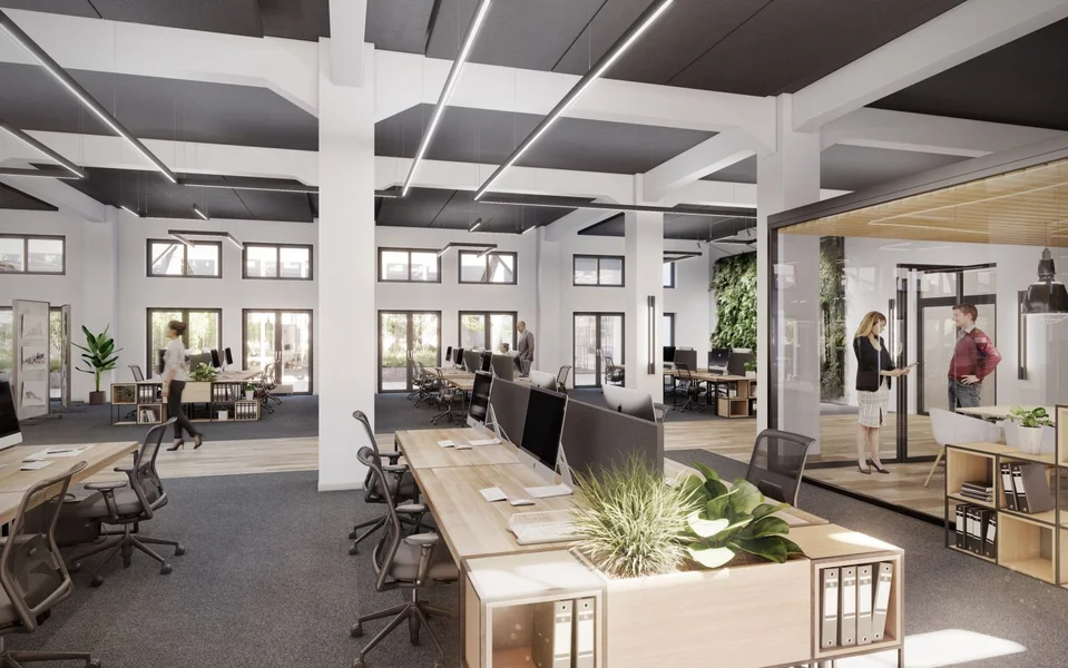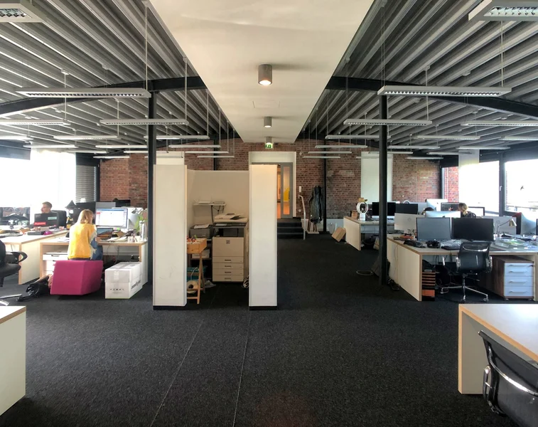 Die Büroflächen des Zeughauses bestechen durch ihren modernen Loftcharakter. Die industrielle Architektur mit ihren typischen Stützenkonstruktionen und den sehr hohen Decken gibt den offen gestalteten Räumen einen authentischen Charme.