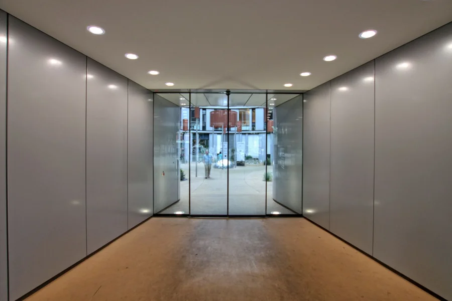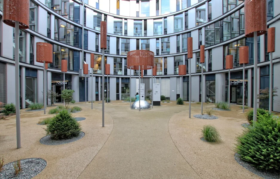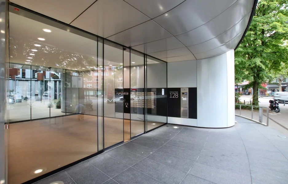 Die „Hamburger Welle“ wurde 2004 gebaut und bietet Dir auf sechs Etagen plus Staffelgeschoss moderne Büroflächen mit Tiefgarage. Das Gebäude selbst ist ein architektonisches Highlight – ein zentraler Rundbau mit offenem Atrium, ergänzt durch einen halbkreisförmigen Flügel. Die rund 13 Meter tiefen Gebäudeflügel sind effizient erschlossen: Drei Kerne mit Fluchttreppenhäusern und vier Aufzügen bringen Dich und Dein Team schnell ans Ziel.