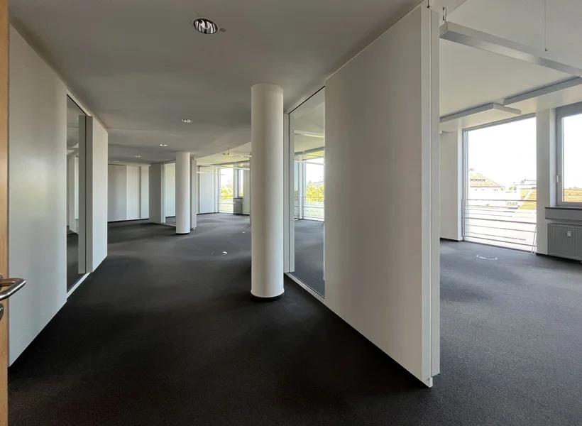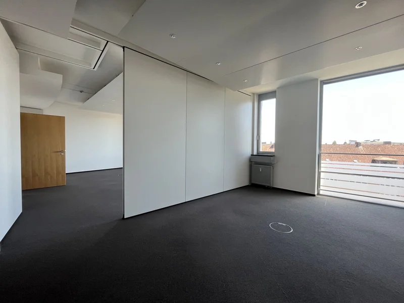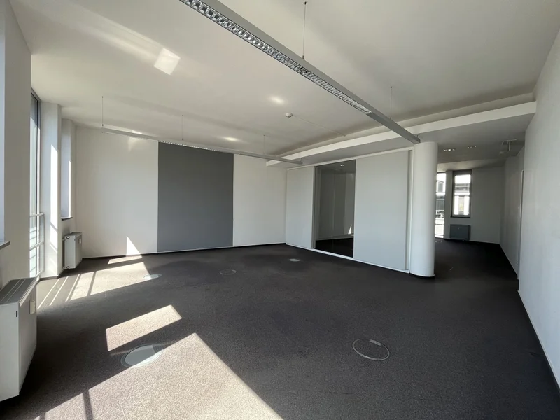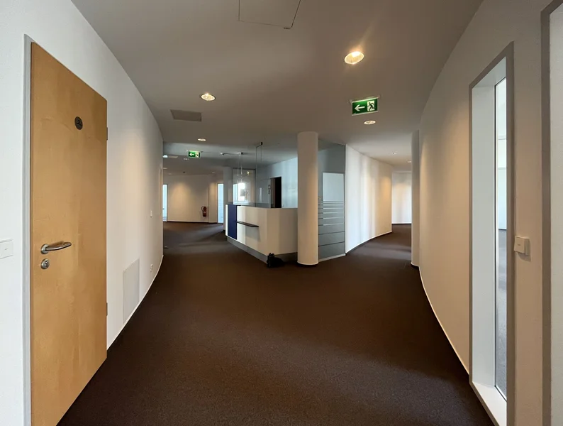 Was Dich drinnen erwartet? Hochwertiger Ausbaustandard, flexible Raumaufteilung durch ein variables Trennwandsystem, Alu-/Glas-Fassade und Hohlraumböden. Du entscheidest, wie Du arbeiten willst: Großzügige Open Spaces mit viel Licht und Luft für kreative Ideen oder kleinere, ruhigere Einheiten für fokussierte Gespräche und Projekte – jede Etage mit ca. 2.450 m² ist in drei Mietbereiche teilbar und anpassbar.