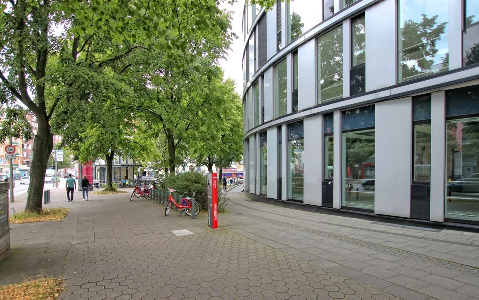 Runde und stylische Büroflächen in Ecklage von Hohenfelde mieten. Tiefgarage für alle Mieter.