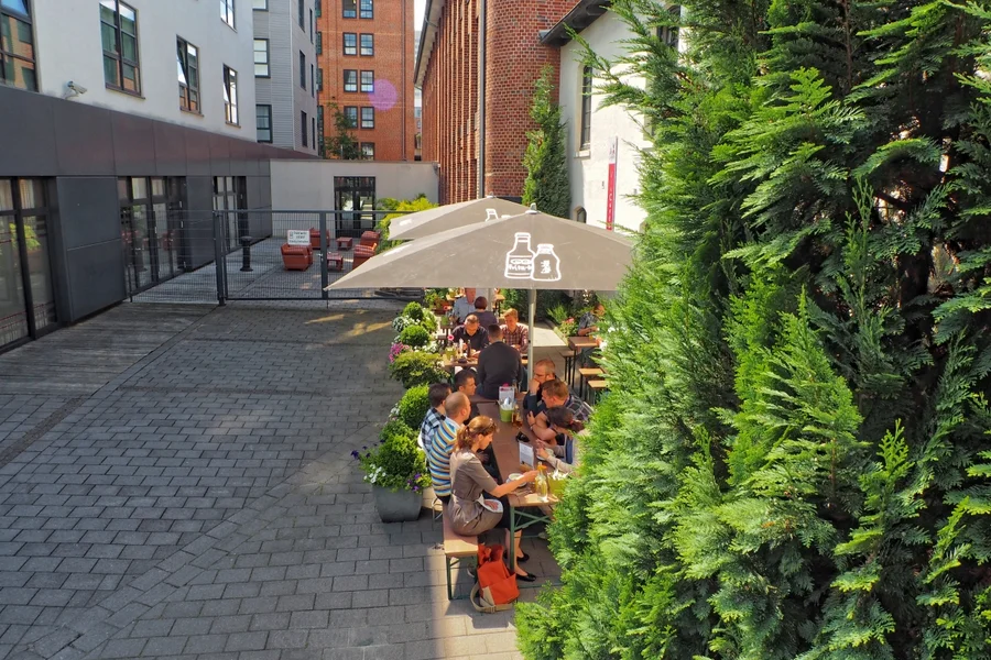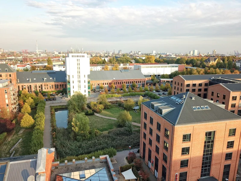 Stahl, Backstein und kreative Impulse. All das findet Ihr hier im Überfluss. Hinzu kommen Einkaufsmöglichkeiten für den täglichen Bedarf sowie ausreichend Grünflächen die Euch und den Kollegen Platz zum Verweilen in der Mittagspause bieten.