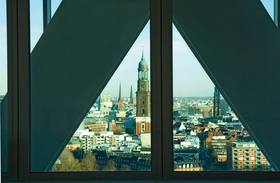 Blick über Hamburg - Neue Büros mit Concierge auf St. Pauli mieten.