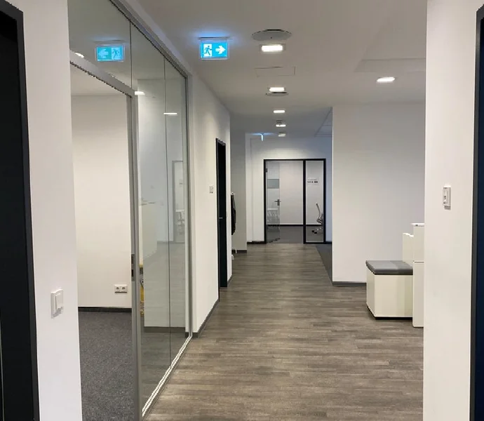 Die markanten Rotklinkerbauten mit großzügigen Fensterflächen bieten moderne, lichtdurchflutete Büroetagen, die über hochwertig gestaltete Eingangsbereiche und Personenaufzüge erschlossen werden. Der Ausbau der Flächen erfolgt in enger Abstimmung mit Ihnen – so entstehen passgenaue Lösungen für individuelle Arbeitswelten. Ob Einzelbüros, offene Teamflächen oder flexible Kombistrukturen: Hier ist alles möglich.