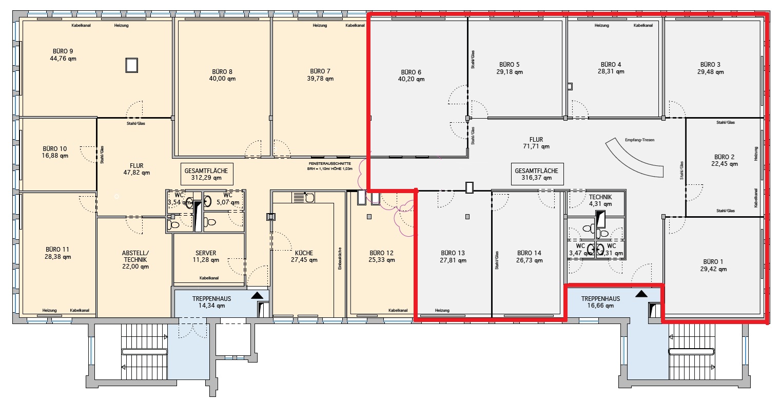 Stock | Gebäude A | Gebäude B | Gebäude C | Freie Mietfläche |