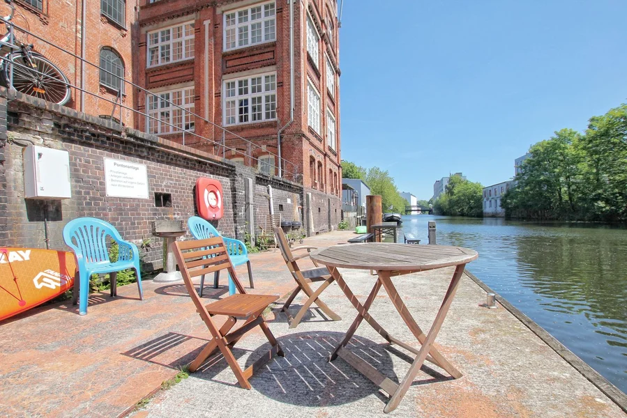 Erschlossen wird die Schokoladenfabrik über die Wendenstraße. Über einen fast altertümlichen Kopfsteinweg fahrt Ihr direkt auf die Schokoladenfabrik zu und könnt direkt vor dem Objekt bequem parken. Über einen großen Torbogen spaziert Ihr auf den gläsernen Fahrstuhl zu und werdet so bequem in Eure Etage befördert. Am Südkanal gelegen hat das Areal einen eigenen Bootsanleger. Wer also in den Morgenstunden mit dem Boot ins Büro fahren will, kann hier einen Traum in Erfüllung gehen lassen. Diese romantische Anlage lockt in der Mittagspause die Mitarbeiter der ansässigen Unternehmen an und lädt zum Verweilen ein. Die Kombination aus hohen Decken, großen Fensterfronten und hellen Dielenfußböden sorgen für ein lichtdurchflutetes Erscheinungsbild. Je nach Etage und Lage der Fläche blicken Sie auf das wunderschöne Fleet oder in die Grünanlagen. Gewerbenutzer welche Raum für kreatives Denken benötigen, kommen bei dieser Rarität ins Schwärmen.