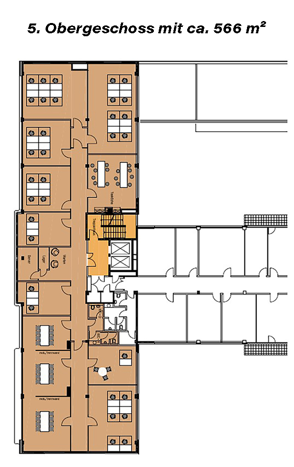 | Stock | Gebäude A | Gebäude B | Gebäude C | Gebäude D | Freie Mietfläche |