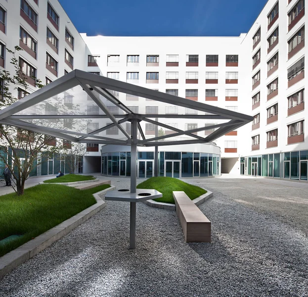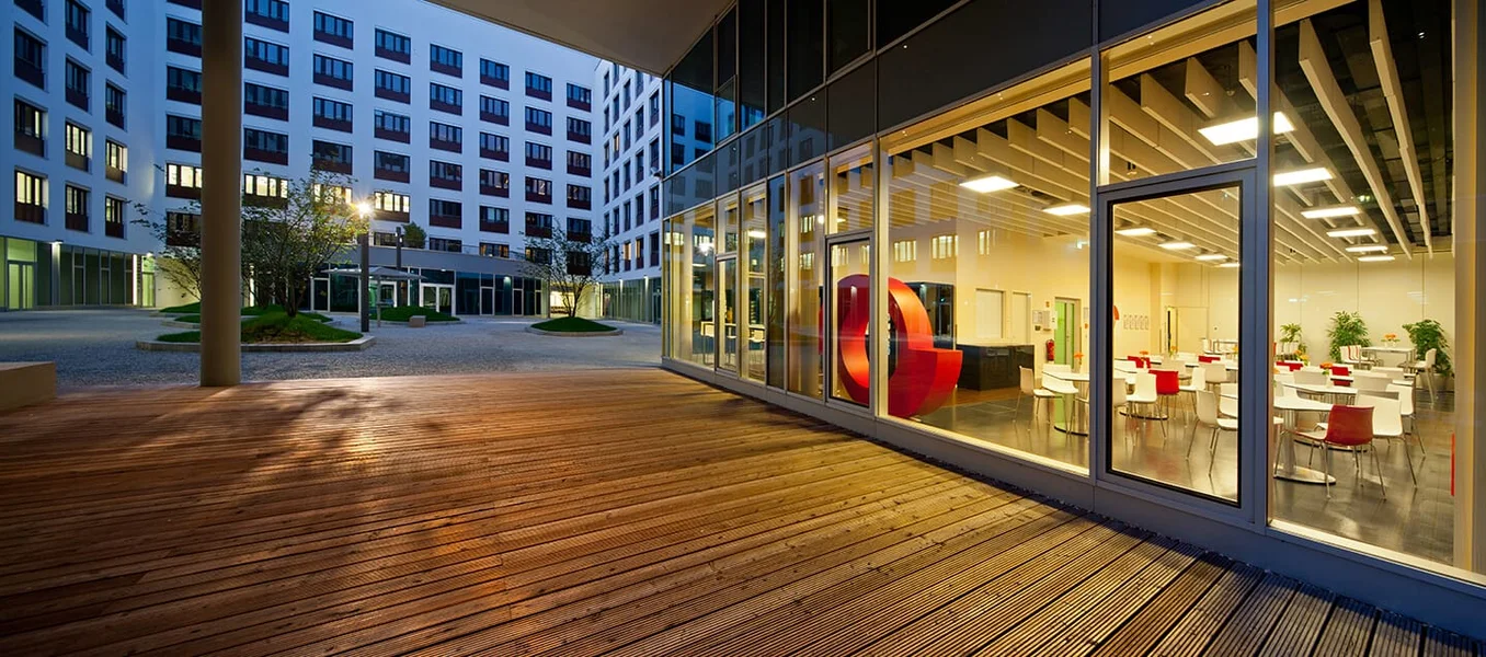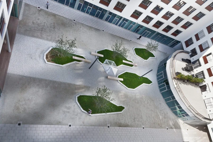 Ein aufwendig gestalteter Innenhof mit hoher Aufenthaltsqualität bietet direkten Zugang zum angrenzenden Kanal – ein perfekter Ort zum Durchatmen und für entspannte Pausen. Über diesen Bereich gelangt ihr auch zu den fünf Erschließungskernen, die zu euren zukünftigen Büroflächen führen. Dank effizienter Grundrisse und einer optimalen Gebäudetiefe von 13,50 m lassen sich verschiedenste Raumkonzepte realisieren – individuell an eure Bedürfnisse angepasst.