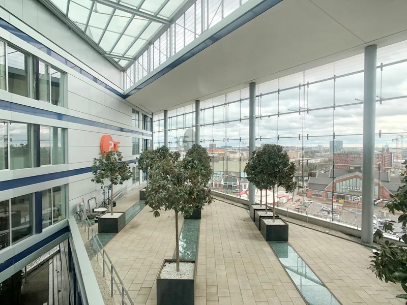 Das östliche Tor zur City - so könnte man das bekannte Deichtorcenter zwischen Hauptbahnhof und der Elbphilharmonie in der HafenCity beschreiben. Als Sitz von namhaften Unternehmen, bietet das Deichtorcenter repräsentative Räume an prominenter Stelle. Zweiseitig vom Wasser umgeben, kann man das Deichtorcenter sowohl von der Willy-Brandt-Straße wie auch von der Oberbaumbrücke betreten. Die eindrucksvolle, gebäudehohe Eingangshalle empfängt Kunden und Geschäftspartner. Über einen der zahlreichen Auszugskerne gelangt man in die Obergeschosse.