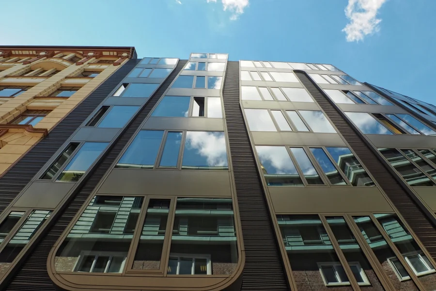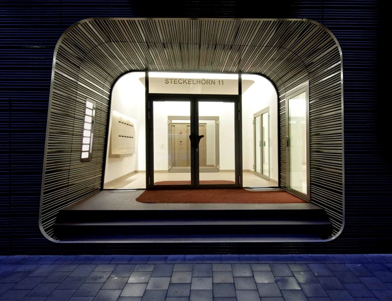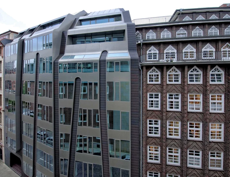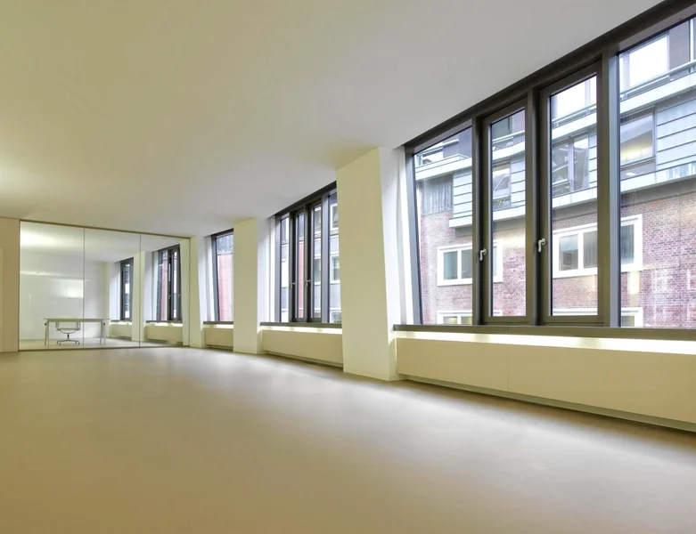 Ein Objekt, welches auf den ersten Blick zeigt was es für Eure Company bereithält. Hochwertige und futuristische Büroflächen in einer tollen Innenstadtlage und nur wenige Schritte vom Wasser entfernt. Die außergewöhnliche und unregelmäßig angeordnete Keramikfassade in Kombination mit den großen Fenstern verspricht einzigartige Büroflächen.