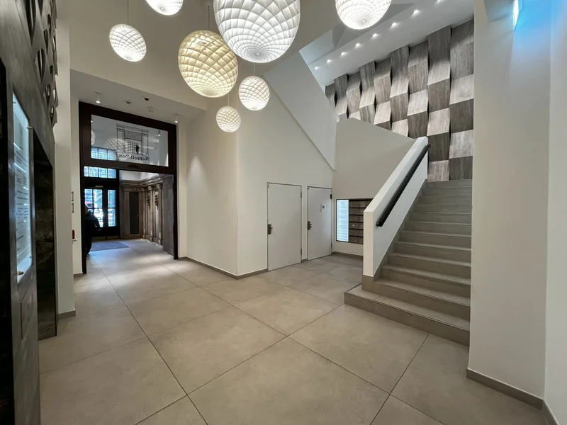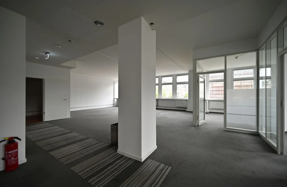 Die Immobilie selbst steht teilweise unter Denkmalschutz und wurde unter Berücksichtigung dessen umfangreich saniert. Über den aufgearbeiteten Eingangsbereich erschließt Ihr dieses Büro- und Geschäftshaus und gelangt über mehrere Personenaufzüge in die gewünschten Büroetagen. Die Büroflächen selbst bestechen heute durch eine hochwertige Ausstattung, einer hohen Flächeneffizienz sowie einer guten Belichtungssituation und werden in Abstimmung mit dem neuen Mieter ausgebaut.