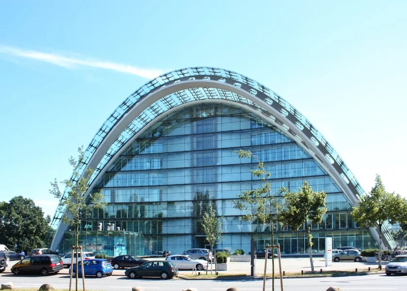 Der Berliner Bogen ist eines der außergewöhnlichsten Bürogebäude Hamburgs – preisgekrönte Architektur und eine spektakuläre Bauweise machen ihn einzigartig. Mit seinen 36 Meter hohen Stahlbögen überspannt er auf 140 Metern das Ende eines Hochwasserbassins und verkörpert eindrucksvoll das Zusammenspiel von Wasser und Stadt.