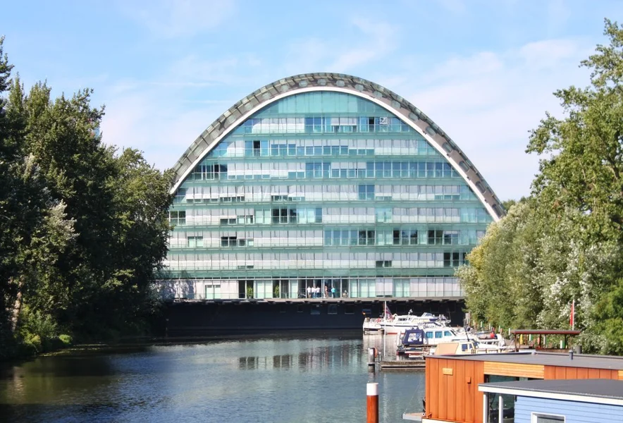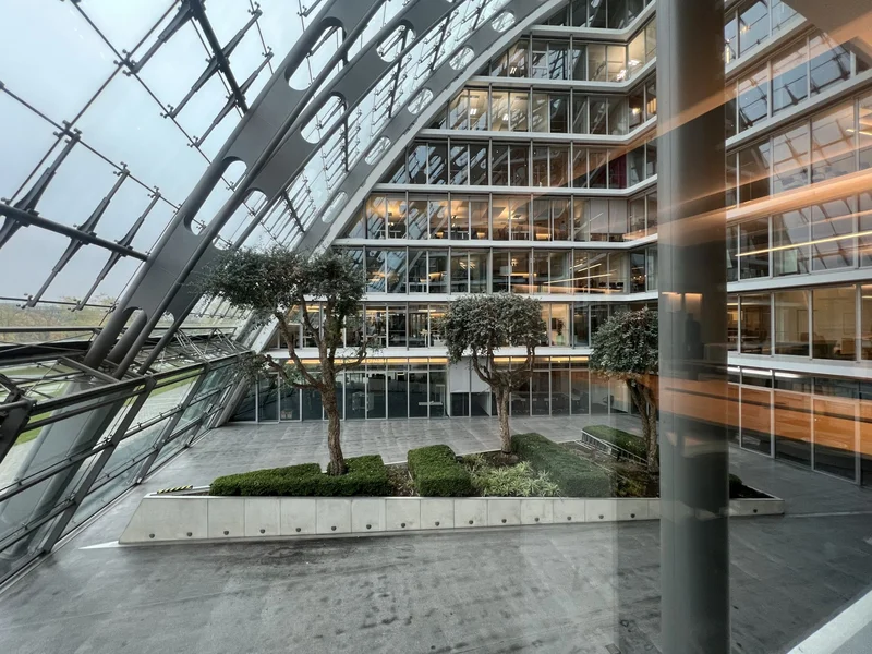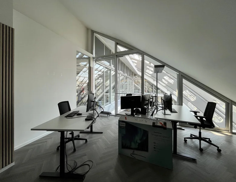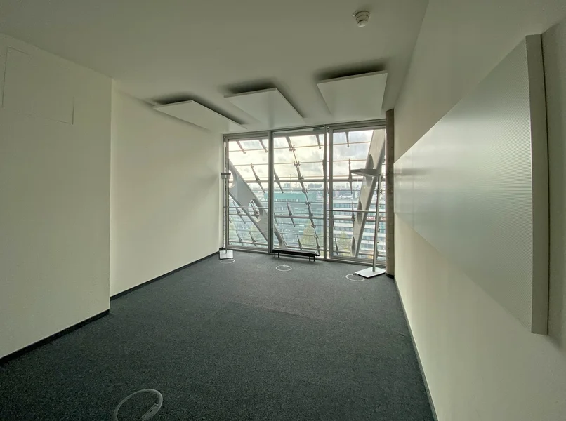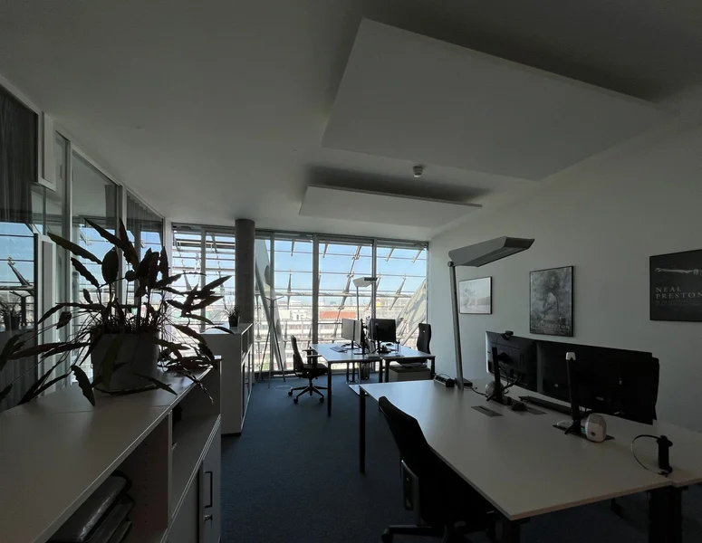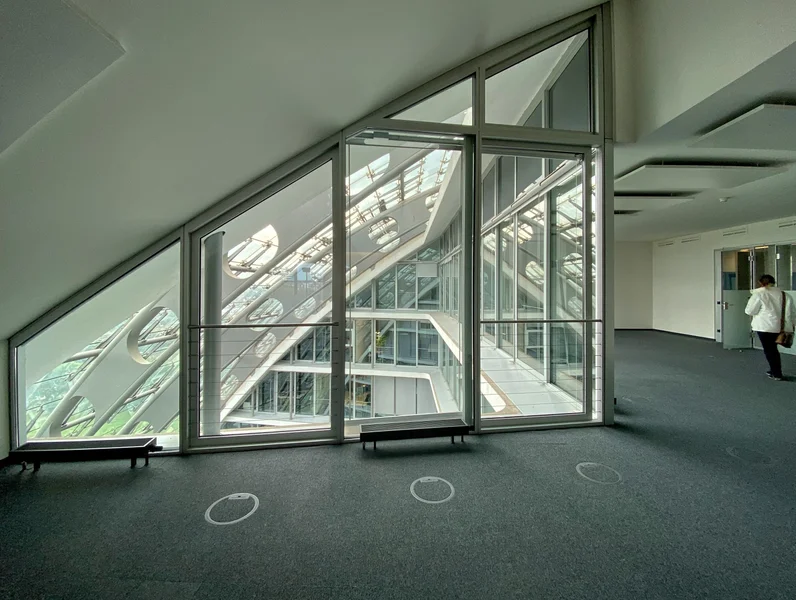 Helle, repräsentative Büroflächen mit flexibler Raumaufteilung bieten ideale Arbeitsbedingungen für bis zu 1.200 Arbeitsplätze. Die gläserne Fassade, die durch das Wasser gekühlt wird, sowie modernste Energietechnik unterstreichen das nachhaltige Konzept des Gebäudes.
