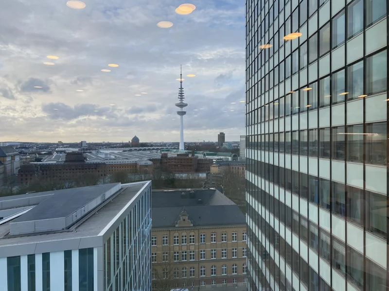 Im Zuge umfassender Modernisierungen wurde das Gebäude zum Green Building entwickelt und um zwei Stockwerke auf insgesamt 23 Obergeschosse erweitert. Von hier genießt du einen einzigartigen, unverbaubaren Blick über Hamburg – zur einen Seite auf die Elbe, zur anderen auf die Alster.