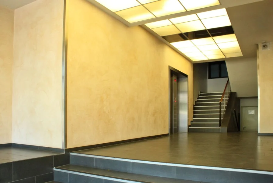 Das Gebäude betretet Ihr über einen modernen und repräsentativen Eingangsbereich. Ansprechende, helle Aufzugskabinen bringen Euch auf die jeweilige Büroetage. Das Regelgeschoss kann individuell in verschiedenste kleinere Teilflächen aufgeteilt werden.