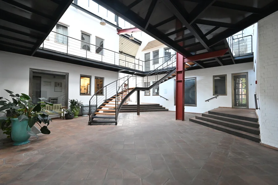 Schon beim Betreten dieser Immobilie spürt Ihr das ganz besondere Flair dieser altehrwürdigen Fabrikhalle. Die Büroflächen mit Ihrer überdurschnittlichen Deckenhöhe versprühen einen Reiz der ganz besonderen Art: Historische Holzbalken, Industrieelemente und ein echter Dielenboden sorgen für die nötige Authentizität. Hier wird Euch und Eurem Team jede Menge Platz zum kreativen Arbeiten geboten. Die vielen Fensterelemente sorgen obendrein für eine helle und freundliche Arbeitsatmosphäre. PKW-Stellplätze für Euch und Eure Mitarbeiter können selbstverständlich zusätzlich angemietet werden.