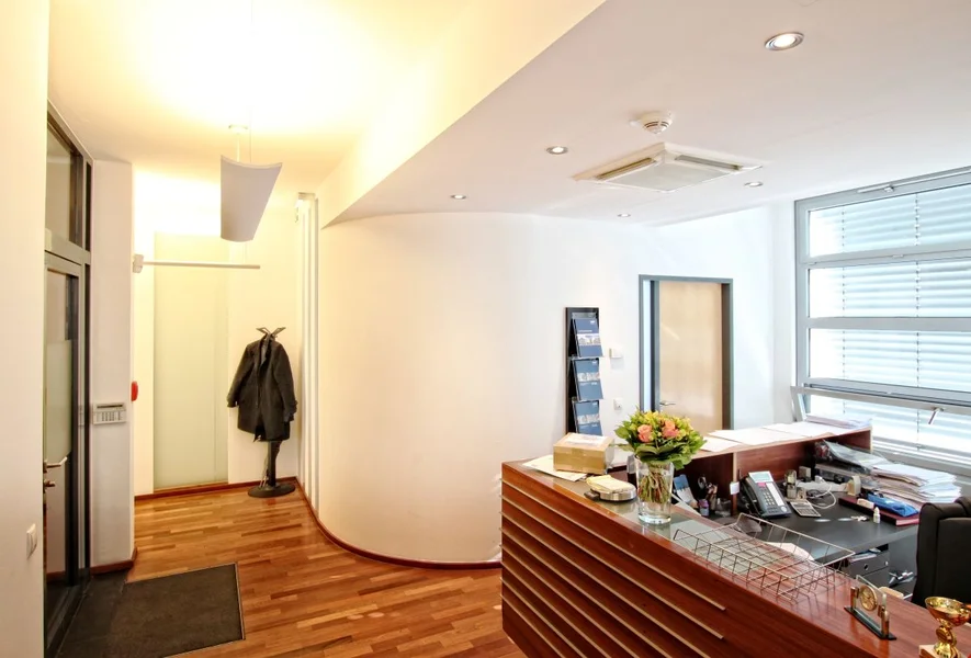 Außen lässt das gepflegte, äußere Erscheinungsbild vermuten, was im Inneren auf Euch wartet. Ihr erschließt das Gebäude über einen modern gestalteten Eingangsbereich. Von dort aus bringt der Personenaufzug Euch direkt in Eure neuen Büroräume. Eine hochwertige Ausstattung der Bürofläche versteht sich von selbst. Parkettboden, Bodentanks sowie moderne Sanitäreinheiten sind vorhanden. Der atemberaubende Ausblick über Hamburg rundet das Gesamtpaket gekonnt ab.