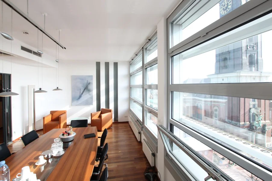 Moderne Arbeitsplätze am Michel mit Blick über den Hafen mietet Ihr hier!