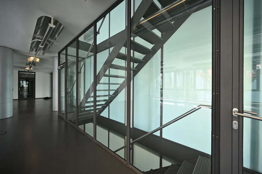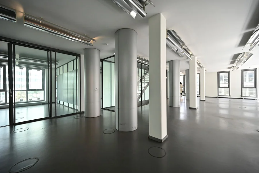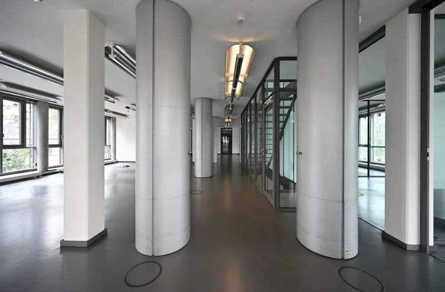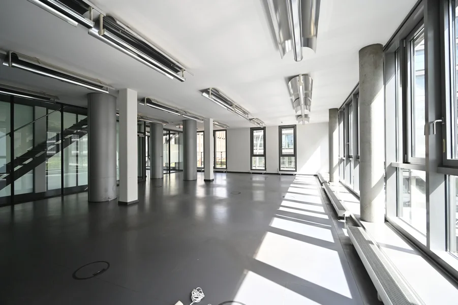 Euren neuen Arbeitsplatz selbst erreicht Ihr bequem über Fahrstühle, wo Euch eine moderne Ausstattung mit viel Tageslicht durch die großzügigen Glaselemte sowie bodentiefe Fenster erwarten. Für die Pause zwischendurch, könnt ihr auf den "kleinen" Austritten den rauchigen Kopf lüften. Bodentanks sorgen für Flexibilität, Glasfaser für die nötige Verbindung und der Sonnenschutz an heißen Tagen für ein wenig Schatten im lichtdurchfluteten Gebäude.