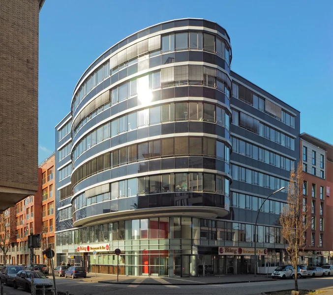 Von außen beeindruckt das Gebäude mit einer durchgängigen Glas- und Aluminiumfassade, die vom Erdgeschoss bis ins 6. Obergeschoss reicht. Der neu gestaltete Eingangsbereich empfängt Deine Gäste und Dein Team repräsentativ und einladend.