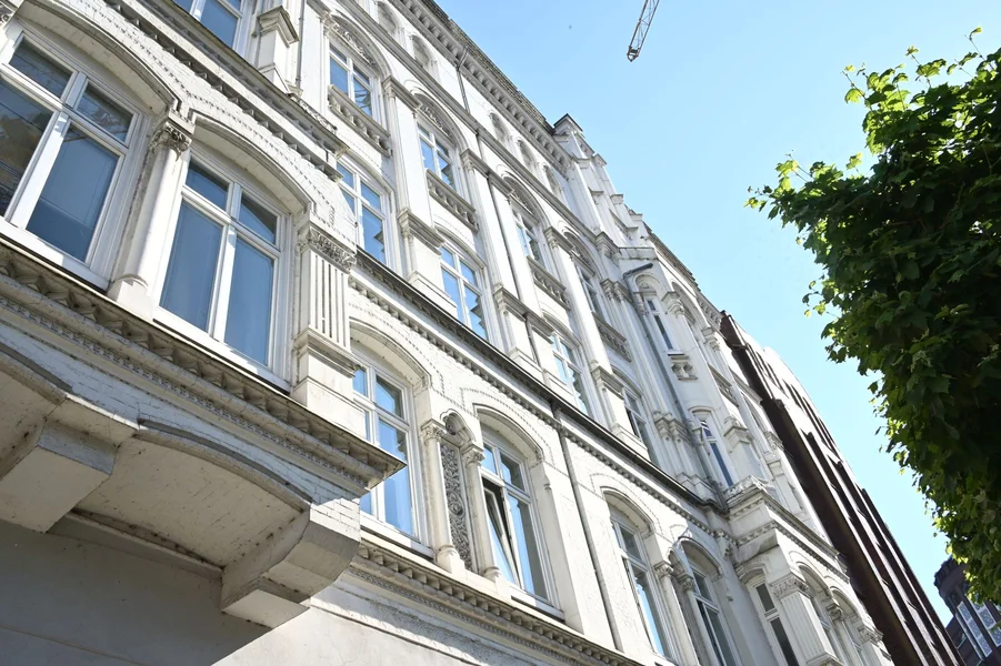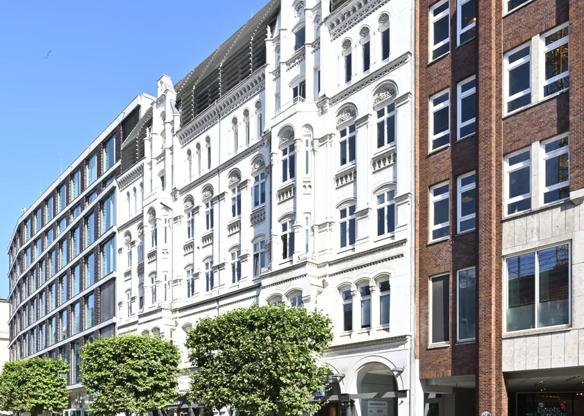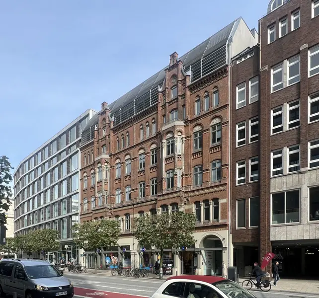 Die markante Außenfassade macht das Gebäude zu einem echten Hingucker. Im Inneren sorgen bodentiefe Fenster für viel Tageslicht und eine angenehme Arbeitsatmosphäre. In der Mittagspause bieten euch der Gänsemarkt, die Mönckebergstraße, der Jungfernstieg oder die Binnenalster viele Möglichkeiten, um abzuschalten und neue Energie zu tanken. Zwischendurch könnt Ihr hier natürlich auch gern auf der Terrasse durchatmen.