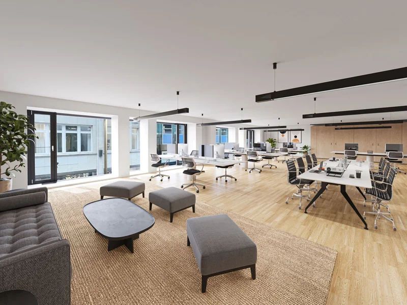 Durch die repräsentative Eingangslobby gelangt Ihr in die exklusiven Büroflächen. Um Eure Anforderungen und Wünsche an einen komfortablen Büroraum optimal zu erfüllen, wurden die Büroflächen sehr hochwertig ausgebaut. Alle im Haus verfügbaren Flächen werden renoviert übergeben und sind obendrein ausgezeichnet belichtet.