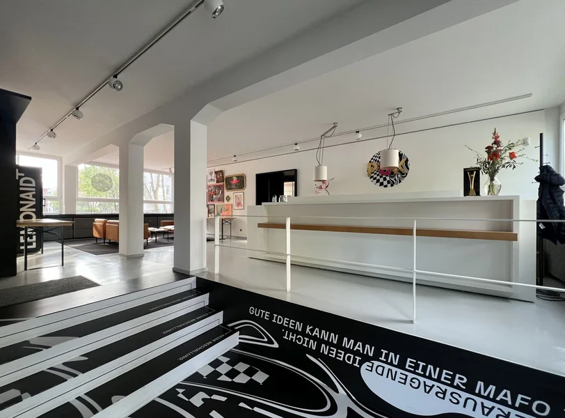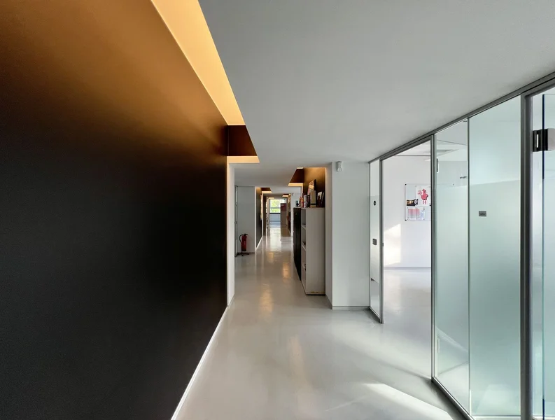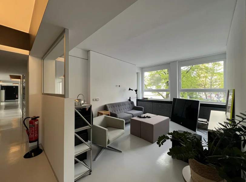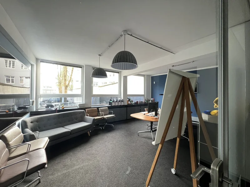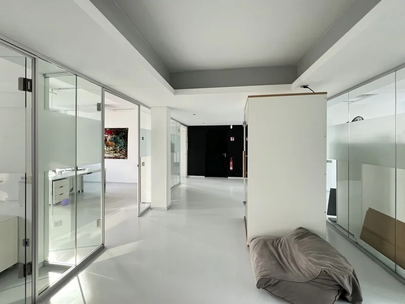 Auch in diesem Haus wurden die Flächen in den vergangenen Jahren von einer namhaften internationalen Agentur genutzt. Erschlossen werden die offenen und lichtdurchfluteten Räume durch einen großzügigen Eingangsbereich. Der hohe Anteil an Glaselementen, gepaart mit einer indirekten Beleuchtung, sorgen on top für einen kreativen Vibe in Eurem neuen Büro.