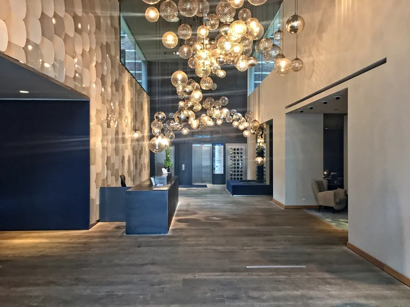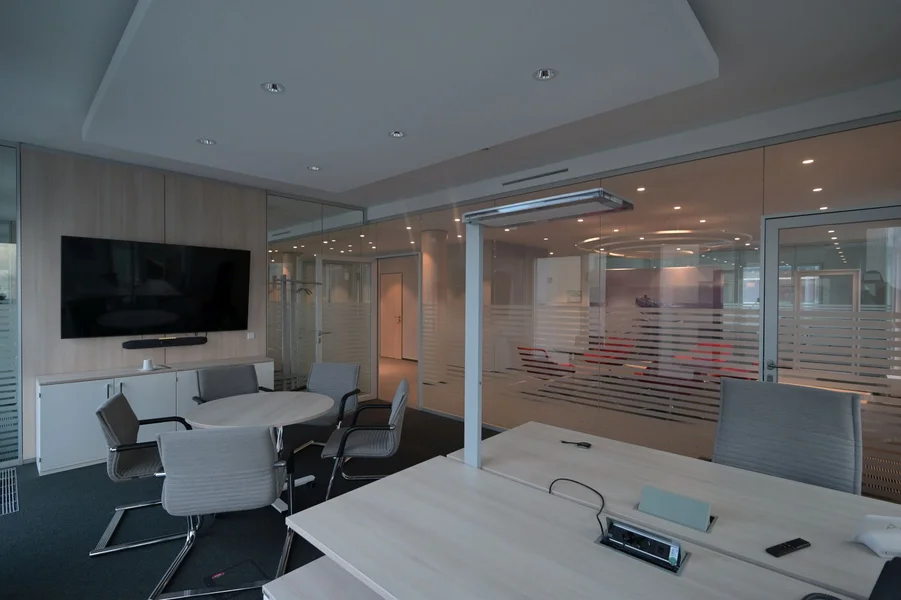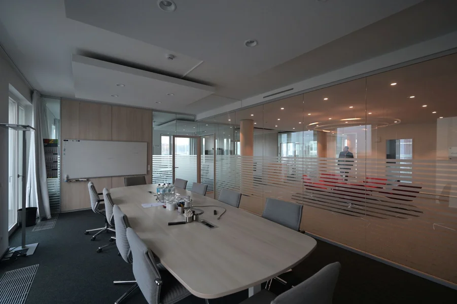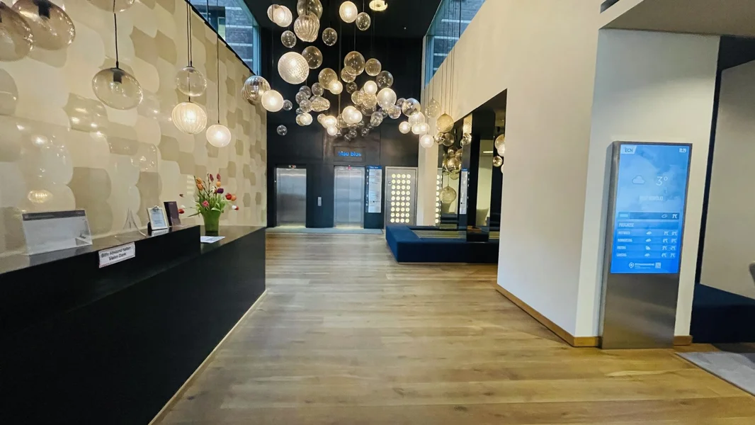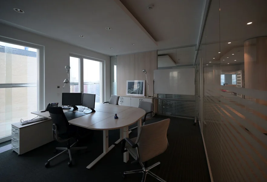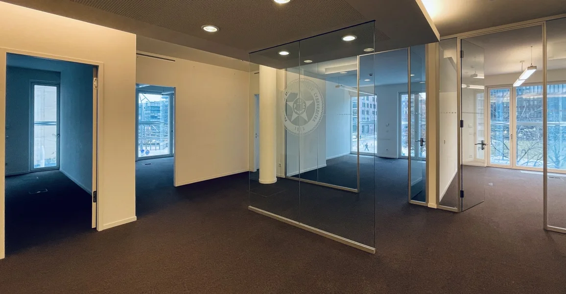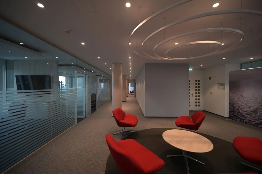 Von dort aus gelangt ihr über mehrere Personenaufzüge in die 4 verschiedenen Gebäudeteile dieses Hauses und von dort dann weiter in die Büroflächen. Diese sind hochwertig ausgestattet, dank bodentiefer Fenster gut belichtet und befinden sich auf dem neuesten Stand der Technik. Glasfaseranschluss und Bodentanks für sorgenfreies Arbeiten verstehen sich in dieser Immobilie von selbst.