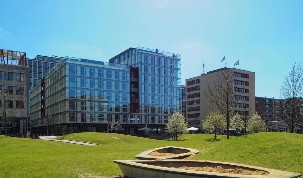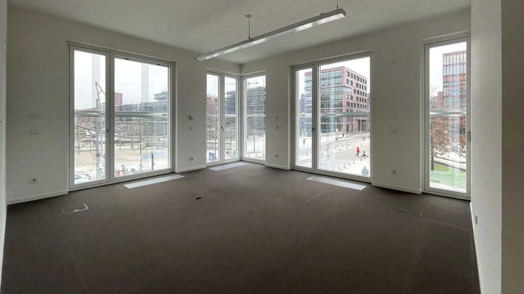 Top-Bürofläche am Sandtorpark mieten. Überseequartier und Elbe vor der Tür.
