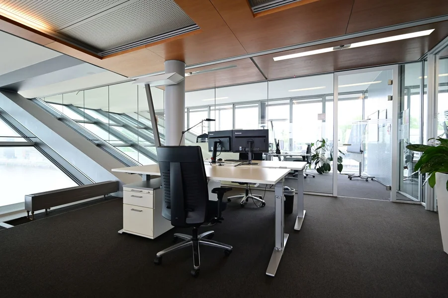 Nach langer Zeit habt ihr nun wieder die Chance, in dem ca. 9.000 m² großen Bürohaus Flächen anzumieten. Die breiten Grundrisse mit flexiblen Mittelzonen sind ideal für Unternehmen, die Kommunikationsbereiche wie Lounges, Teeküchen oder Meetingräume schaffen möchten. Aber auch klassische Bürokonzepte lassen sich hier – in enger Abstimmung mit dem Eigentümer – passgenau realisieren.