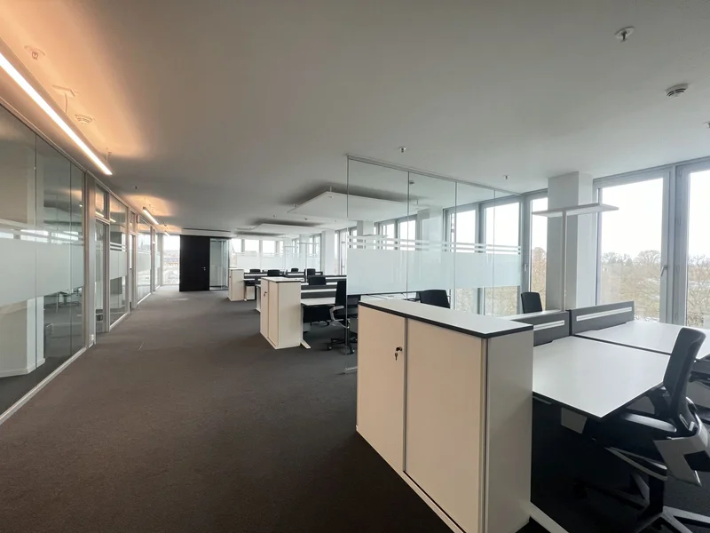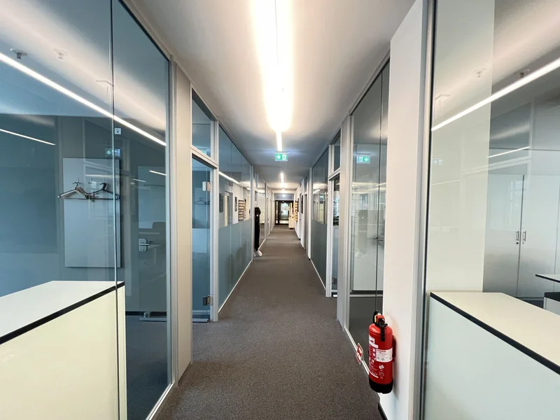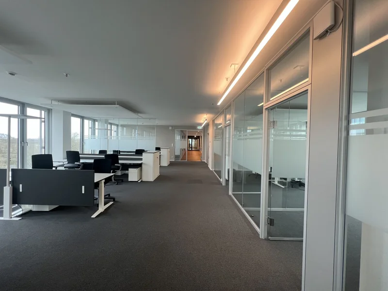 Schon beim Betreten des Gebäudes beeindruckt die großzügige Lobby mit Galerieebene und wird Euch und Eure Gäste herzlich willkommen heißen. Über einen der Aufzüge gelangt Ihr in die zukünftigen Büroflächen. Die Ausstattung umfasst neben wertigen Bodenbelägen auch eine Bauteilkühlung für das individuelle Wohlbefinden bei der Arbeit. Ein außenliegender, elektrischer Sonnenschutz sorgt dafür, dass die Sonne draußen bleibt. Stehleuchten mit Bewegungsmelder sind umweltfreundlich und sorgen für ein angenehmes Licht.