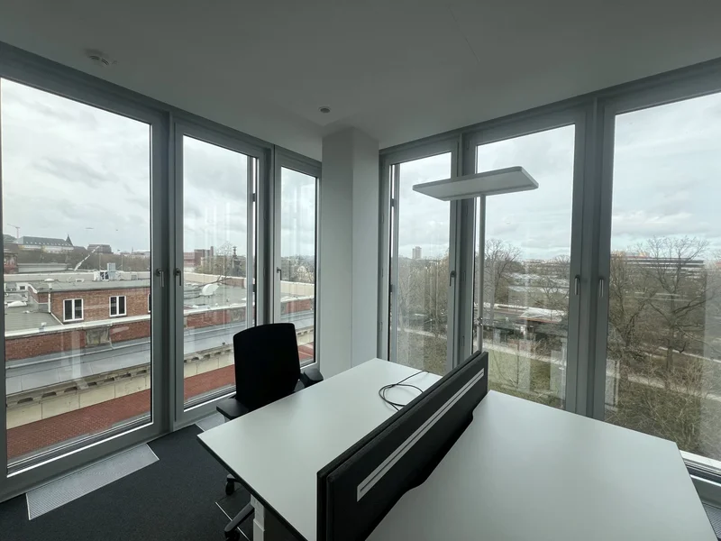 Neubau-Büroflächen hinter historischer Fassade am Dammtor-Bahnhof mieten.
