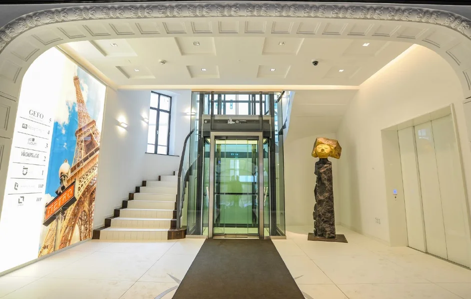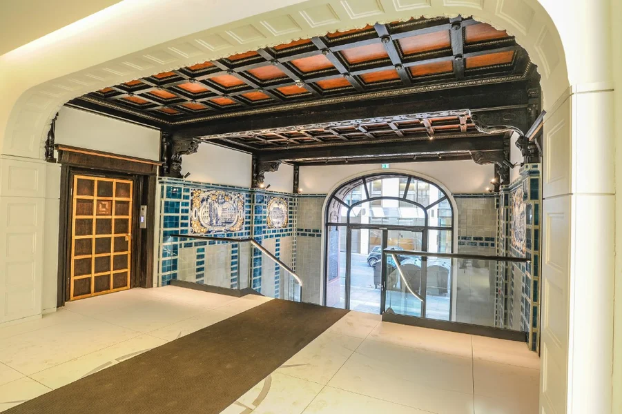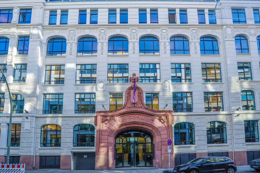 Eines der bekanntesten Kontorhäuser Hamburgs befindet sich direkt in der Nähe des Hauptbahnhofs. 1904 erbaut und in den Jahren 2014/2015 umfassend saniert und modernisiert wurde das Brügge-Haus, welches sich durch ihr Zusammenspiel von historischer Architektur gepaart mit moderner Ausstattung auszeichnet. Im repräsentativen Eingangsbereich findet Ihr historische Wandfliesen und eine Kassettendecke aus Holz vor, welche den hanseatischen Stil hervorheben. Die einzelnen Flächen erschließt Ihr sowohl über den gläsernen Panoramaaufzug, als auch über ein gläsernes Treppengeländer, vor allem dabei wird dieser Kontrast von altertümlicher Architektur gepaart mit modernen Stilmitteln deutlich. Die Flächen selber besitzen viele Glaselemente, Akkustikelemente und Tageslicht, durch die großzügigen Fensterelemente.