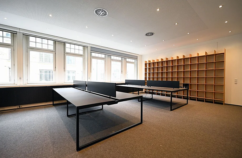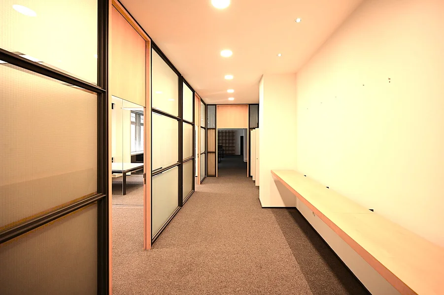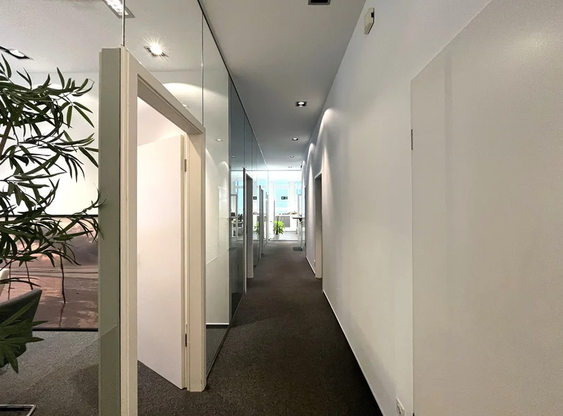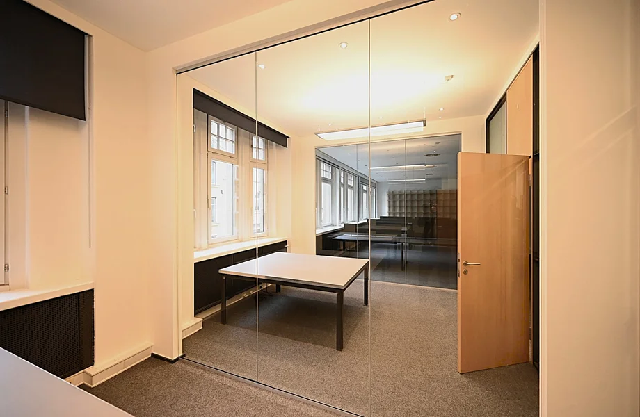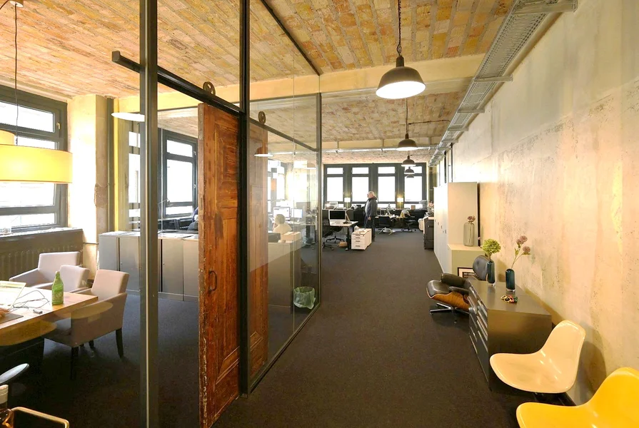 Büroflächen mit ca. 3,60 m Deckenhöhe, Glaswänden und großen Fenstern