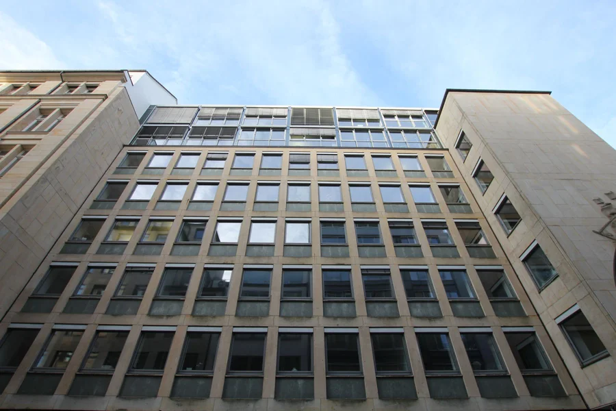 Das fünfstöckige Gebäude wurde in den 90er Jahren um zwei Etagen aufgestockt und kürzlich technisch modernisiert – unter anderem mit einem neuen Personenaufzug. Die Büroflächen sind flexibel gestaltbar und werden in enger Abstimmung mit Euch individuell ausgebaut.