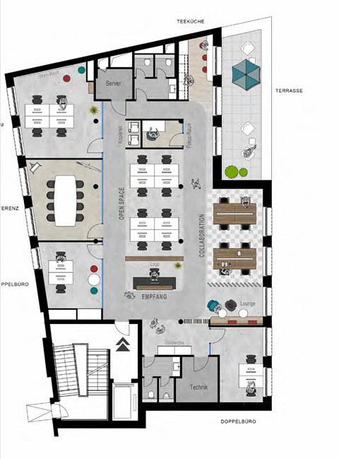Die direkte Anbindung an öffentliche Verkehrsmittel und die Nähe zu erstklassigen Restaurants und Geschäften, machen diesen Standort zu einer tollen Option, hier Euer Unternehmen, auf ein neues Level zu heben.