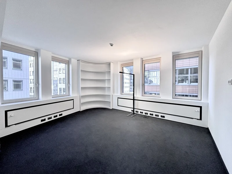 Wie Ihr den Grundrissplänen aus dem Inserat entnehmen könnt, ist die derzeitige Raumaufteilung der Büroflächen überwiegend klassisch beziehungsweise kleinteilig. Hier besteht aber natürlich die Eventualität für Euch an der einen oder anderen Stelle bei Bedarf einige Wände zu entfernen, um schlichtweg mehr Raum zu schaffen. Die 3. & 4. Etagen bieten Euren Rauchern obendrein noch zusätzliche Balkone. Ansonsten gilt auch hier die Devise: Der Mietpreis ist abhängig von Euren Umbauwünschen.
