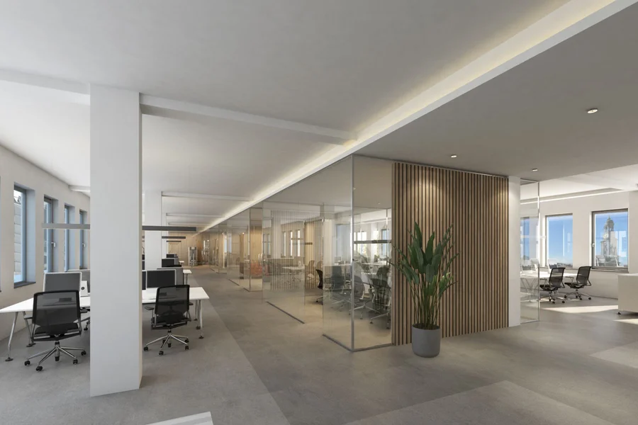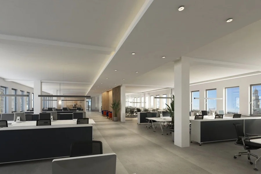 Die verfügbaren Büros sind individuell ausgebaut. Neben offenen Loftbüros im angesagten Industrielook mit beeindruckendem Blick über die Dächer Hamburgs und auf den Michel gibt es auch klassischere Optionen für Euch. Alle Flächen zeichnen sich durch eine hervorragende, natürliche Belichtung dank zahlreicher Fenster aus. Der Ausbau erfolgt dabei in enger Abstimmung mit Euch, um die Büros genau nach Euren Wünschen zu gestalten.