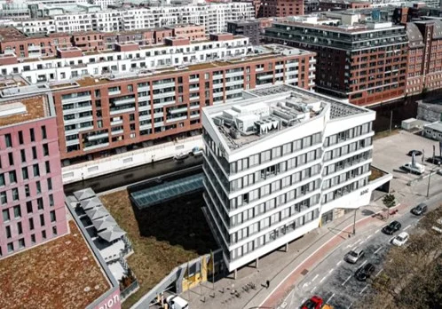 Dieses moderne Bürogebäude an der Amsinckstraße besticht durch seine zentrale Lage in unmittelbarer Nähe zum Hauptbahnhof und direkt am Kanal. Die Büroflächen sind hochwertig ausgestattet und bieten eine Akustikdecke, Kühlung durch Unterflurkonvektoren, Nimbus LED-Deckenleuchten, einen edlen Teppichvlies sowie einen Serverraum. Eine voll ausgestattete Küche und die Terrasse mit Blick auf den Fleet stehen zur gemeinschaftlichen Nutzung bereit.