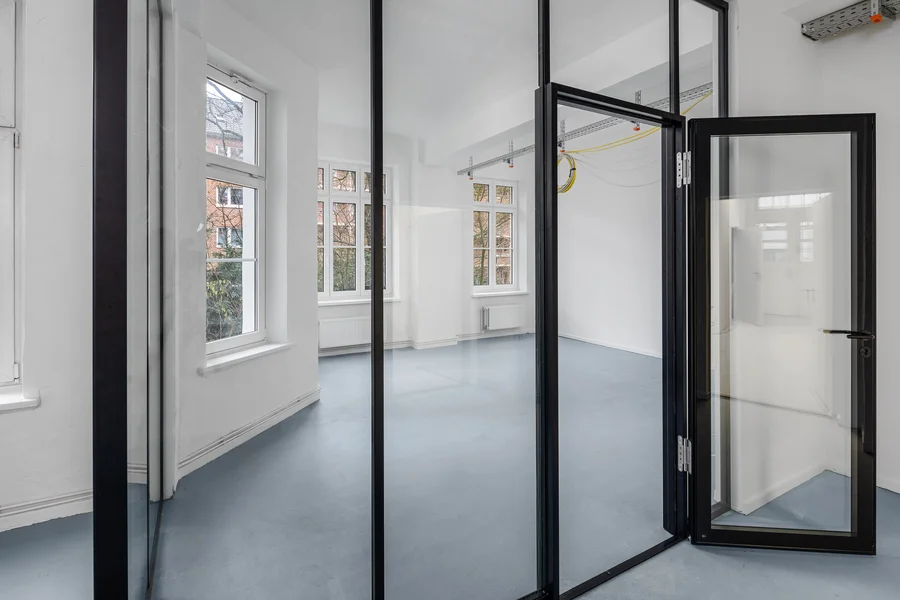 Die Flächen befinden sich in einem 4-geschossigen Hinterhaus – der ehemaligen Schokoladenfabrik – das aktuell umfassend modernisiert wird. Ausbau und Grundriss erfolgen flexibel nach Euren Wünschen. Ideal für kreative Teams, Agenturen oder Start-ups, die das Besondere suchen.